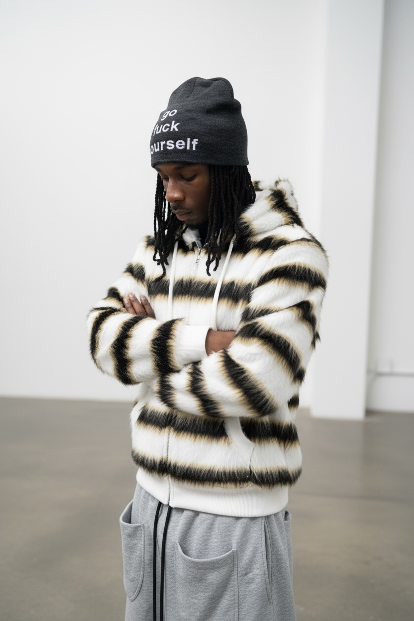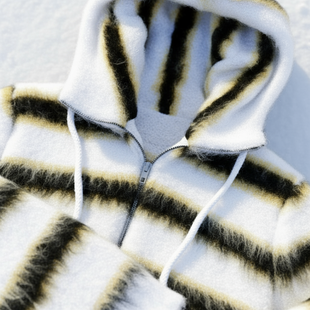 This isn’t your average zip-up, it’s motion in texture form. Built from premium mohair, it feels like quiet confidence. Soft to touch, loud in energy.